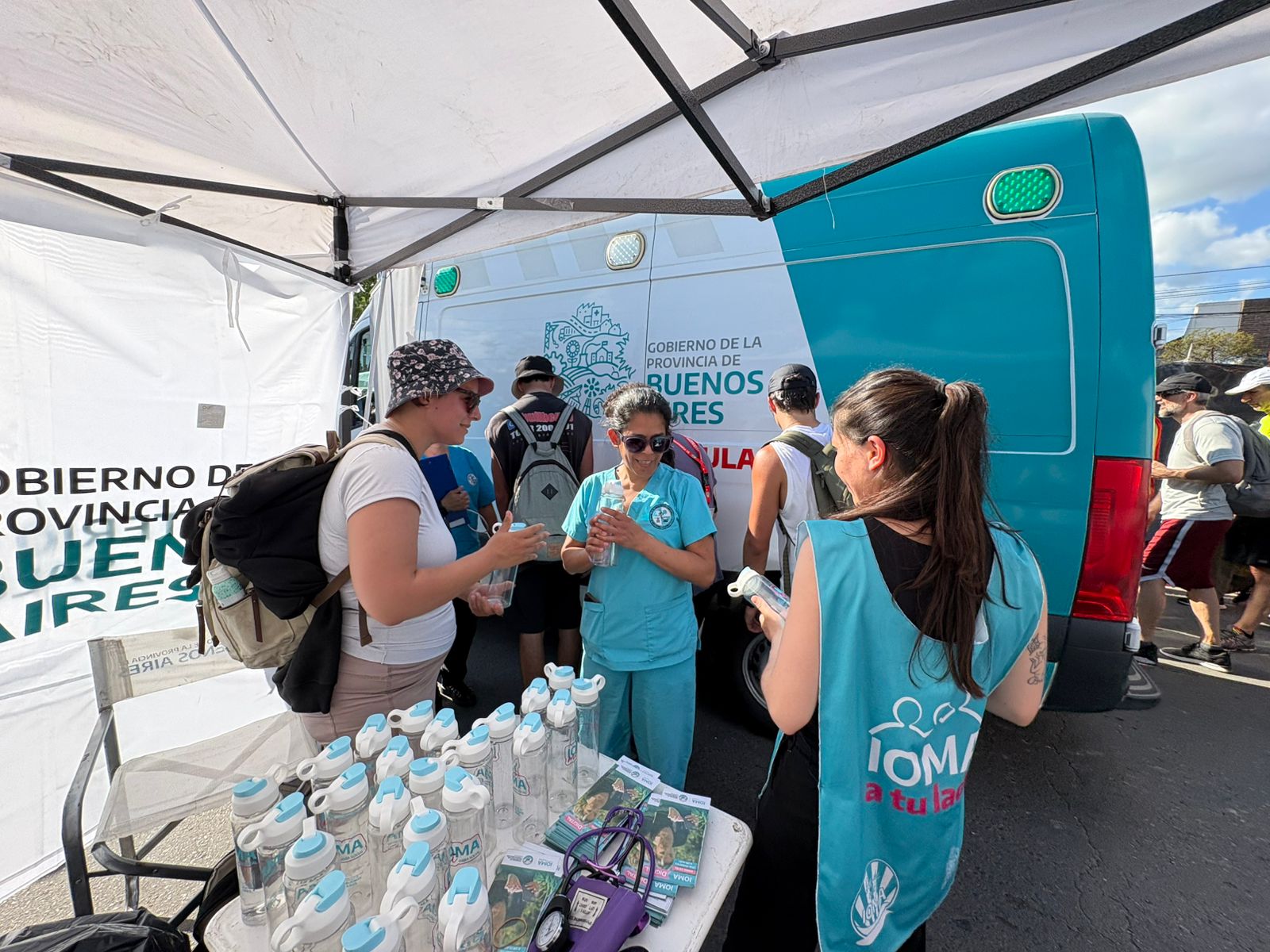 Además de IOMA, estuvieron el Ministerio de Transporte que garantizó la interrupción del tránsito en calles y rutas; el de Salud que aportó hospitales móviles y un hospital de mayor complejidad, ambulancias, un shock room, promotores de salud y atención en salud mental; el de Seguridad; el de Infraestructura que proveyó agua con camiones cisterna de ABSA; y la cartera ambiental, con puestos de separación de reciclado.