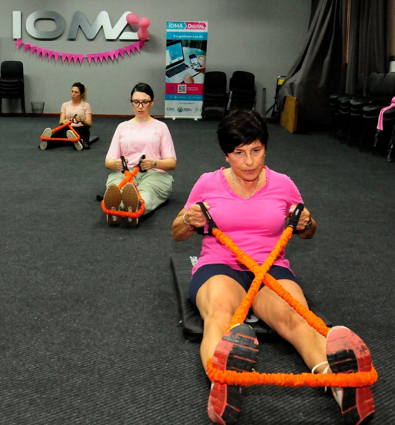 Además del Taller, la prevención también estuvo presente en las clases de fitness que se dictan todos los lunes, miércoles y viernes en el Auditorio de IOMA. Carolina, la profe de gimnasia, al finalizar la clase, mantuvo una charla con las alumnas en donde les compartió algunos consejos prácticos “En el marco de la prevención del cáncer de mama, desde la promoción de salud buscamos siempre integrar desde estos trabajos que hacemos, consejos y tips para que puedan chequearse, prevenir, cuidarse y hacer fuerza, que es tan importante para mantener nuestro tejido muscular activo”.