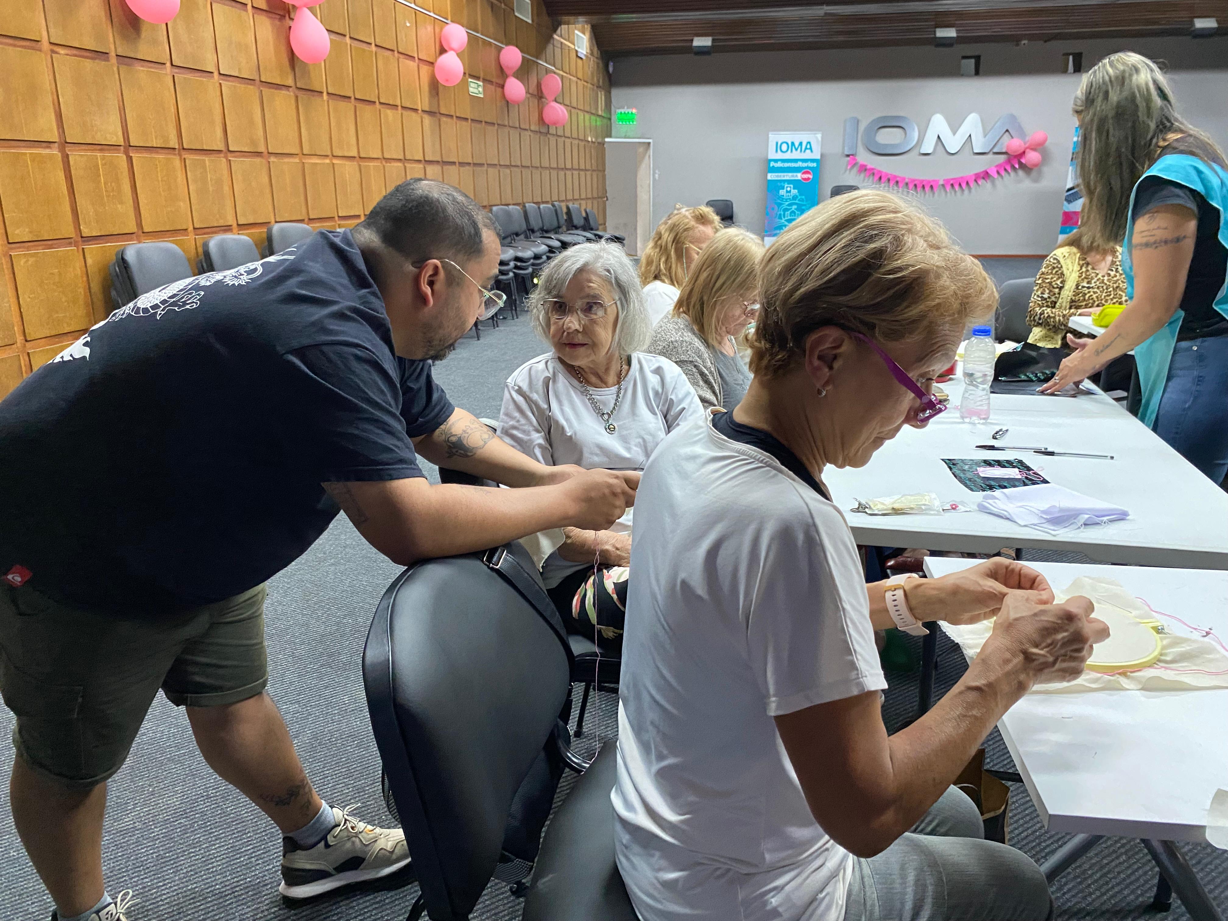 IOMA realizó este miércoles, a partir del programa IOMA a tu lado, diferentes talleres recreativos y promo preventivos en todo el territorio provincial destinado a las personas mayores afiliadas a la obra social. Estas actividades estuvieron enmarcadas en el mes de la concientización de la lucha contra el Cáncer de Mama. En ese sentido, la obra social acompañó a sus afiliadas y afiliados con información promo preventiva en los Talleres de Bordado y Prácticas Corporales Saludables.