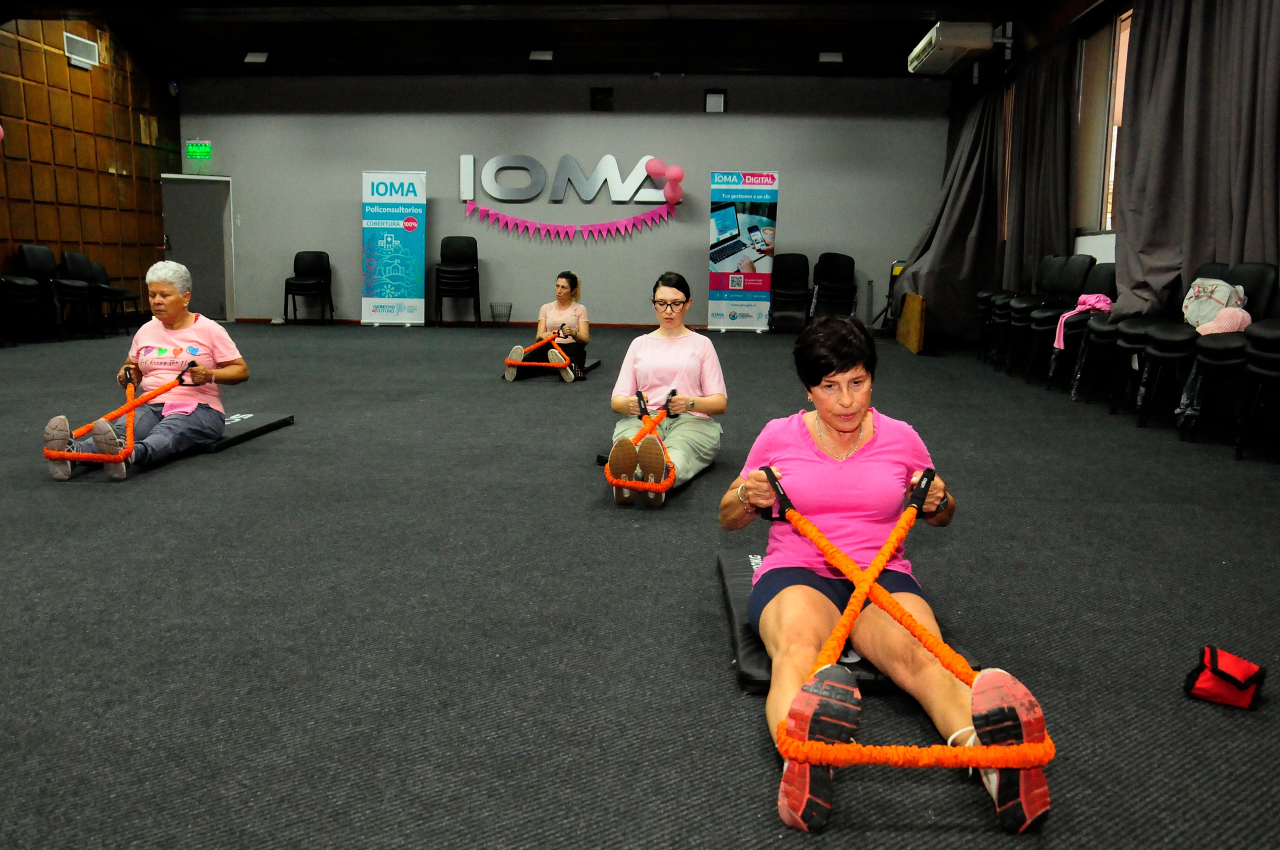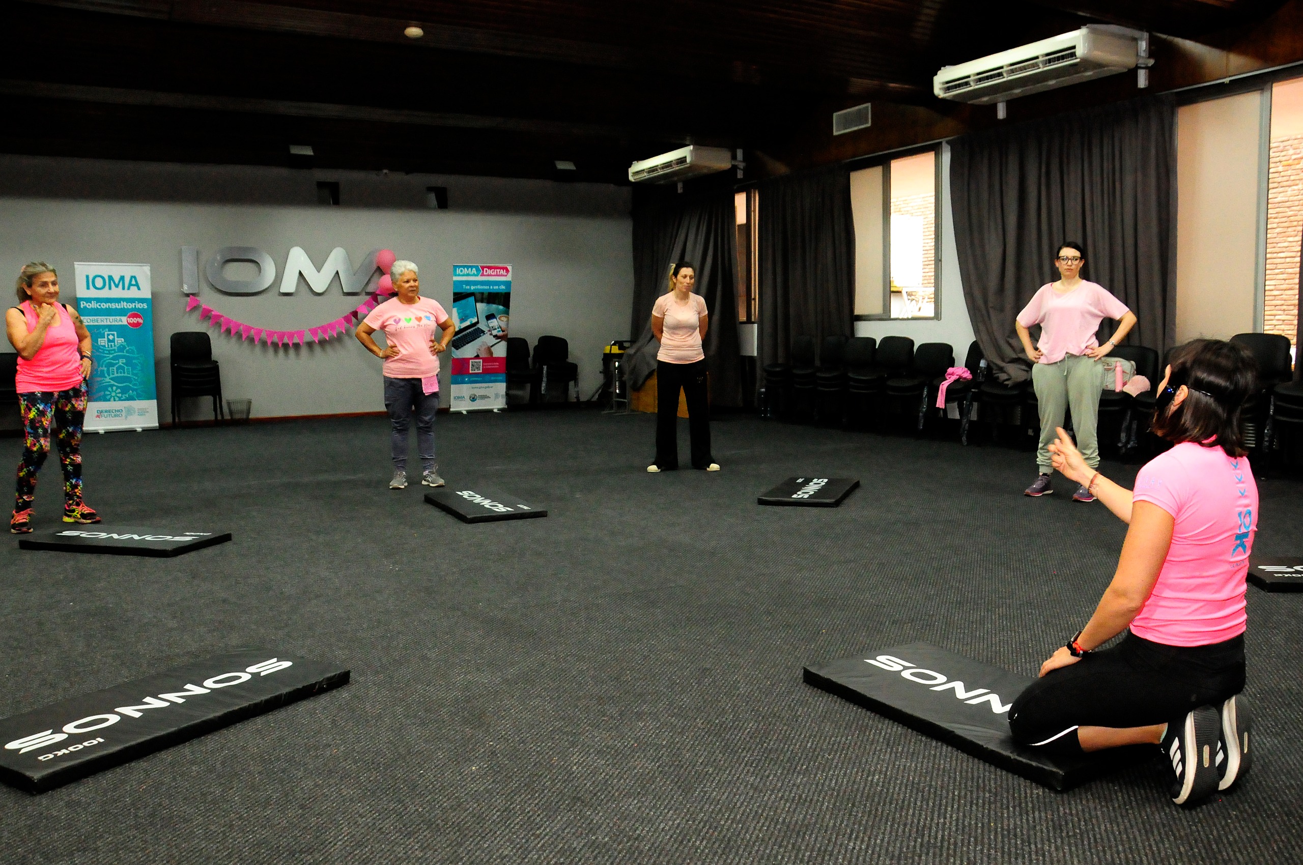 Además del Taller, la prevención también estuvo presente en las clases de fitness que se dictan todos los lunes, miércoles y viernes en el Auditorio de IOMA. Carolina, la profesora de gimnasia, al finalizar la clase, mantuvo una charla con las alumnas en donde les compartió algunos consejos prácticos. “En el marco de la prevención del cáncer de mama, desde la promoción de salud buscamos siempre integrar desde estos trabajos que hacemos, consejos y tips para que puedan chequearse, prevenir, cuidarse y hacer fuerza, que es tan importante para mantener nuestro tejido muscular activo”.