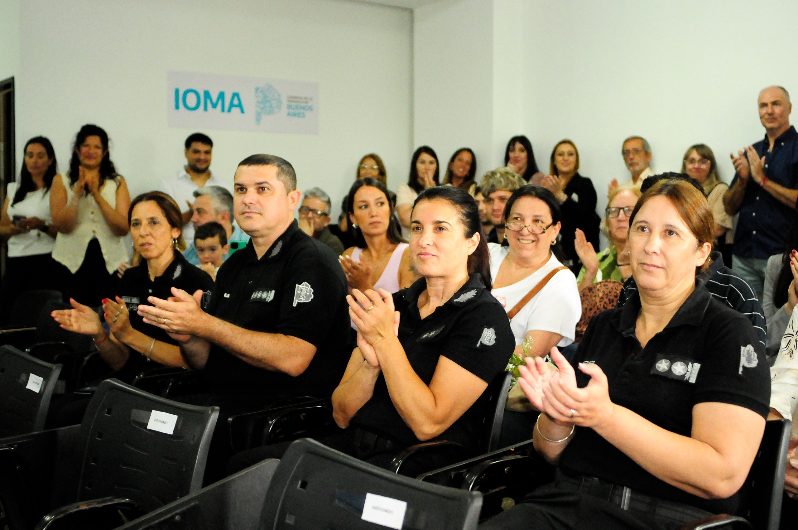Autoridades de IOMA, del ISEI, del Servicio Penitenciario, el Ministerio de Salud, profesores y familiares, acompañaron a las y los egresados de la Tecnicatura en Administración con orientación en Obras Sociales y los felicitaron por su recorrido de formación durante el desarrollo de la carrera.