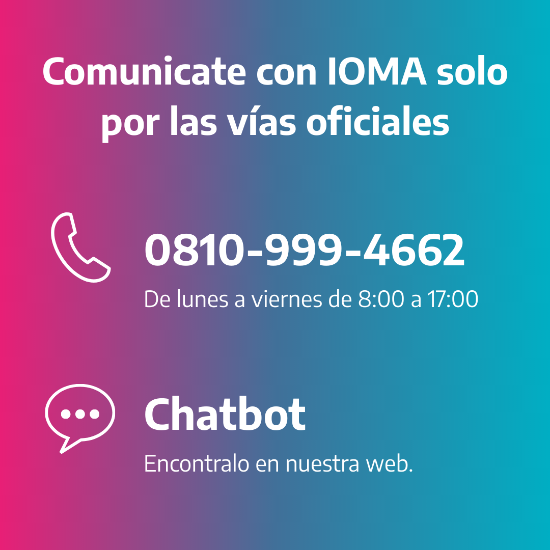IOMA reitera la importancia de estar alerta ante ofertas y requerimientos no oficiales que tienen la intención de estafar y vaciar cuentas bancarias. Ante cualquier duda o situación sospechosa, se recomienda comunicarse de inmediato con la obra social.