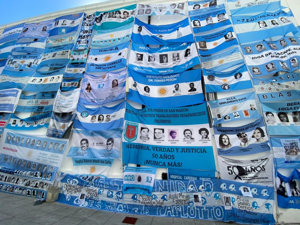 La iniciativa consistió en el descubrimiento de un mural conmemorativo con la leyenda “Salud y Memoria, son 30 mil, una historia, todas las historias” en la explanada del Ministerio, de calles 51, 17 y 18, junto a banderas conmemorativas en hospitales provinciales y Unidades de Pronta Atención, recordando los 50 años del golpe cívico-militar del 24 marzo de 1976.