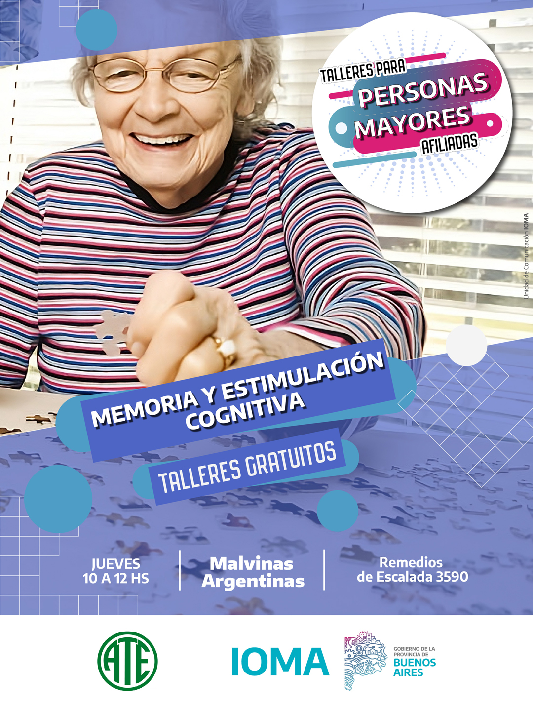 Ofrecemos una variedad de talleres gratuitos para Personas Mayores afiliadas a la Obra Social.