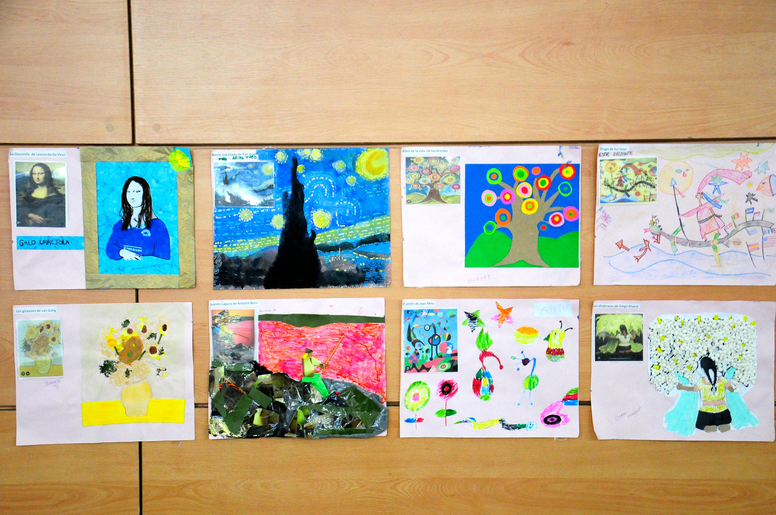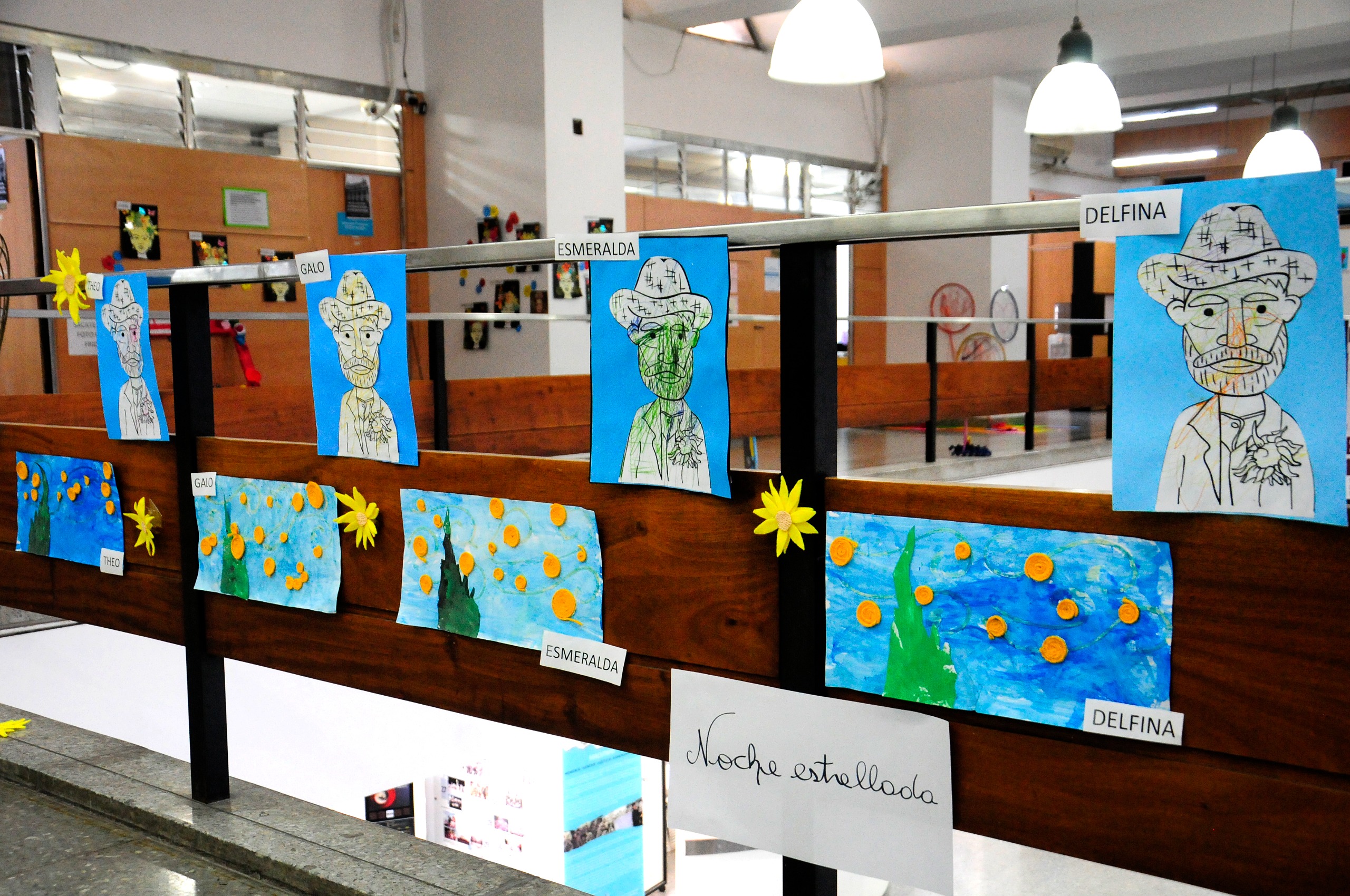 Con la participación de la Sala de prejardín (Azul) y la coordinación de la profesora de Plástica, Marisabel Cribellati, se presentan trabajos de pintores como Vincent Van Gogh, Frida Kahlo y Milo Lockett, entre otros, con múltiples técnicas adecuadas al nivel maternal.